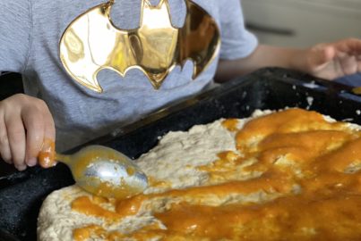 This easy kids pizza dough recipe only has two ingredients and is perfect for process cooking with kids.